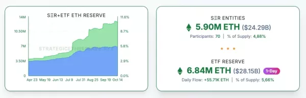 Jelenleg mintegy 5,9 millió ETH található vállalati mérlegeken, 6,68 millió ETH-t tartanak spot ETF-ek, további 48 millió ETH pedig stakingben van lekötve — ez az összes kínálat 29,5%-ának felel meg. Összességében az Ethereum forgalomban lévő állományának több mint 40%-a gyakorlatilag kikerült a piacról — ez történelmi rekord.
