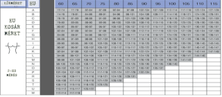 A mérést egyenes háttal kell végezni és szorosan. A mért számot helyettesítsd be az alábbi mérettáblázatba és ezzel megkapod a KÖRMÉRETET.